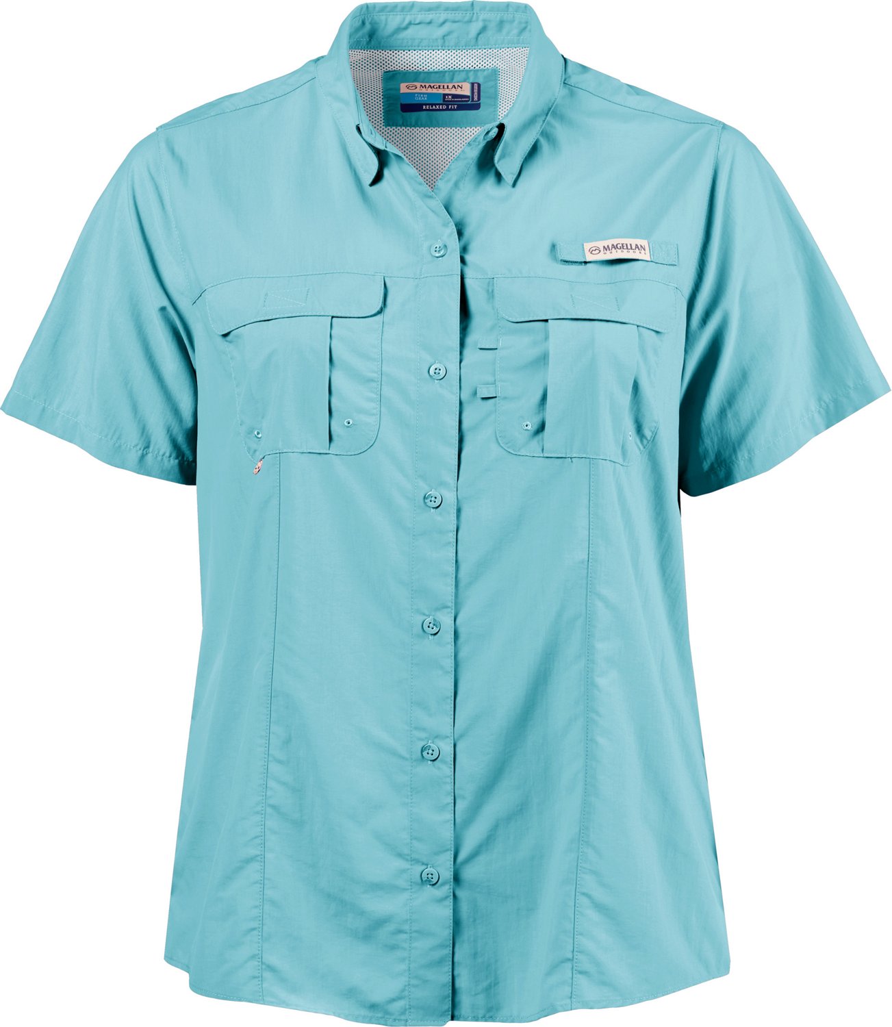 Fish all day in the Magellan Outdoors Women's Laguna Madre Plus Size Fishing Shirt. This fishing shirt is enhanced with UPF-30 protection from harsh rays and wicks away moisture to help keep you dry. It has a full button-down placket, while the cape back increases air circulation.