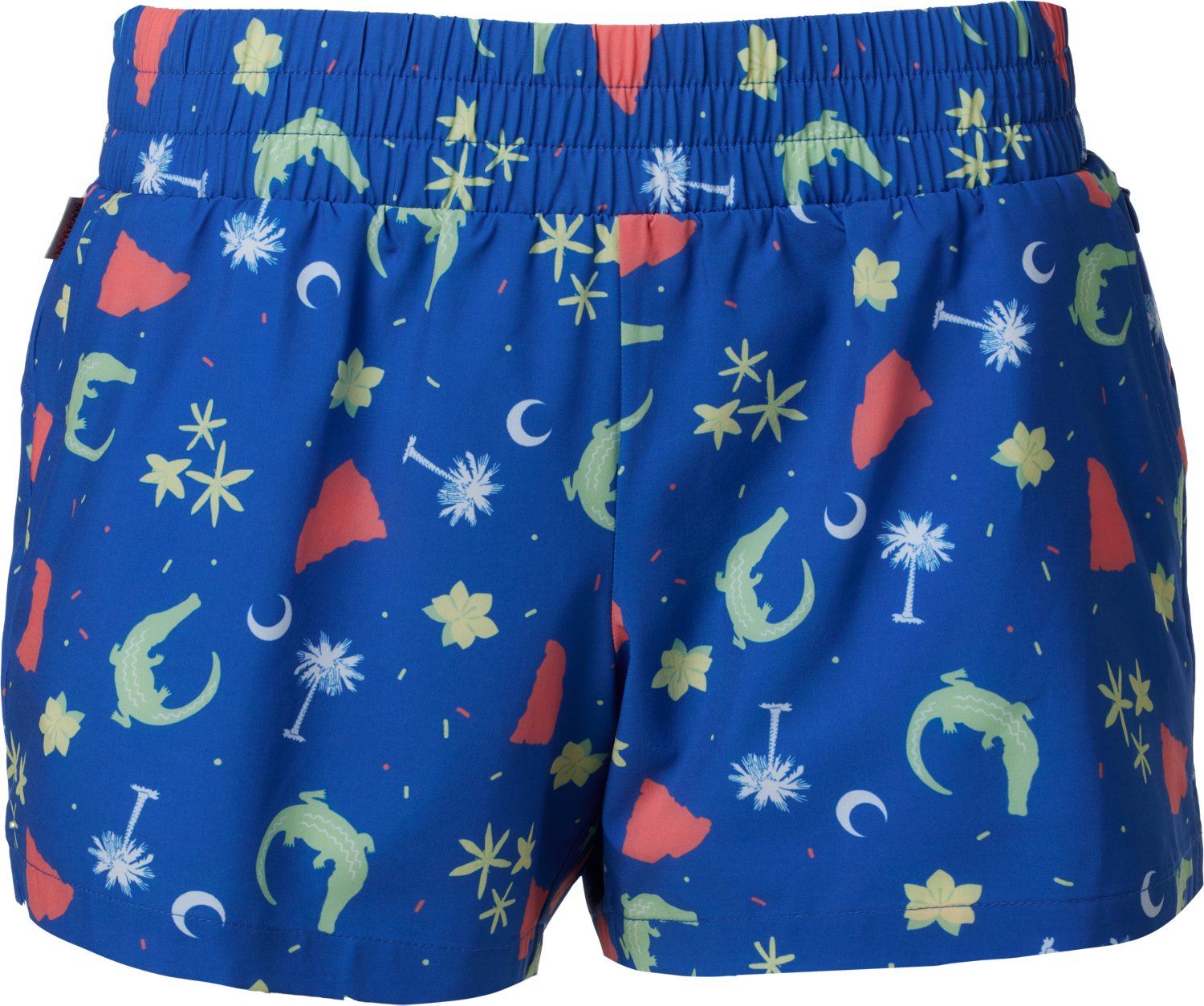 Show off your love for the Palmetto State with the Magellan Outdoors Women's Local State South Carolina Shorts 4 in. These lightweight shorts are made of a stretchy blend of polyester and spandex that repels water and dries quickly so you stay cool and comfortable. The elastic waistband can be adjusted to stay in place, and the UPF sun protection shields your skin from UV rays. The state-inspired design shows off your South Carolina pride. Inseam four inches.