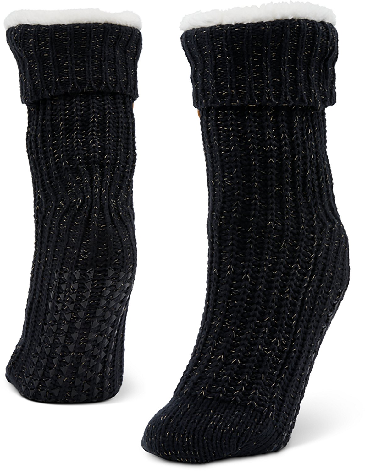 Slip into all-day comfort with the Magellan Outdoors Women's Metallic Lodge Socks. The double-layer construction provides an extra layer to help keep your feet warm and cozy, while the smooth inner lining and durable outer layer offer a snug fit ideal for everyday wear or lounging.