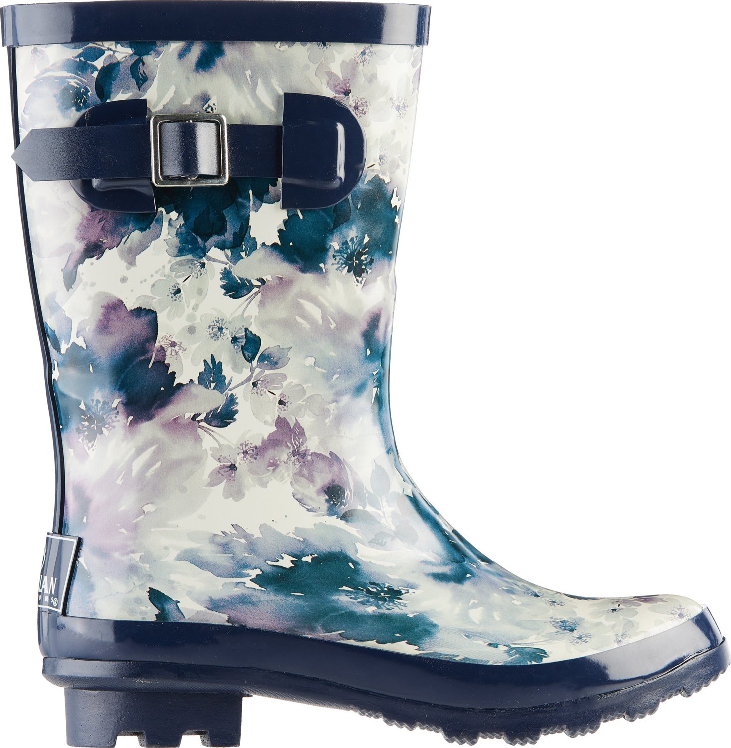 Keep your feet dry out in the rain when you wear the Magellan Outdoors Women’s Mid Calf Floral Rubber Boots. The vulcanized rubber uppers promote durability, and the floral pattern expresses an eye-catching appearance.