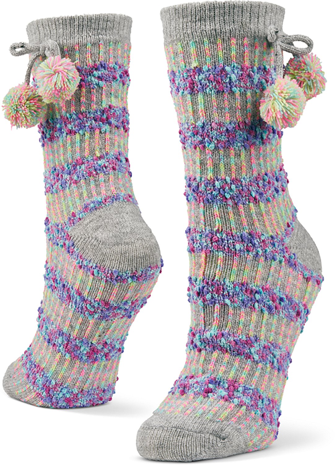 Keep your feet warm while lounging around in the Magellan Outdoors Women's Ombre Popcorn Pom Lodge Crew Socks. The plush fabric blend provides a soft, cozy feel, while the polyester and spandex lining offers added comfort.