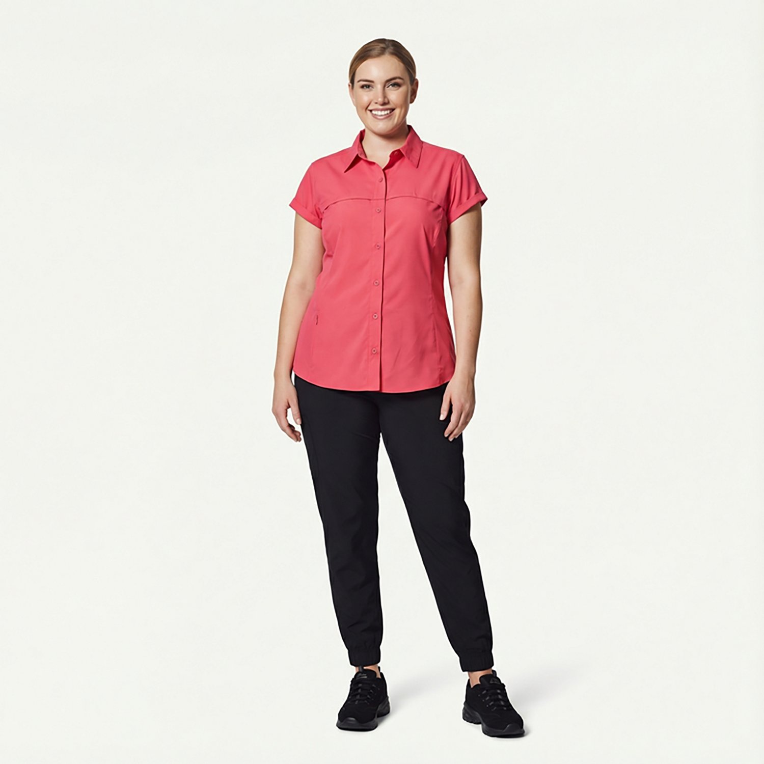 Feel prepared to make a big catch in the Magellan Outdoors Women's Overcast Fishing Button-Down Shirt. The durable 100% polyester, moisture-wicking fabric delivers a cool and comfortable fit, and capped sleeves ensure your movements stay free. The 30+ UPF Protectant technology provides safety against harmful sun rays.