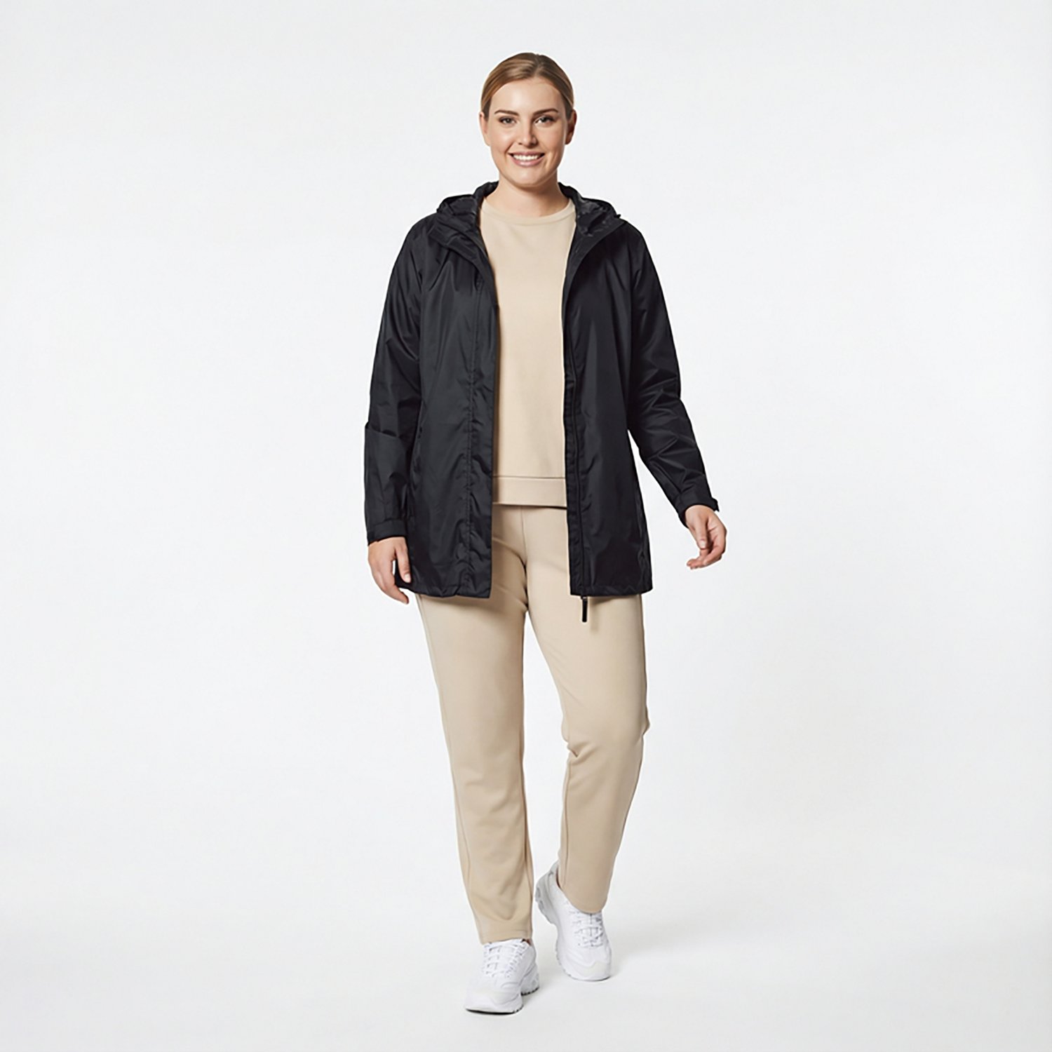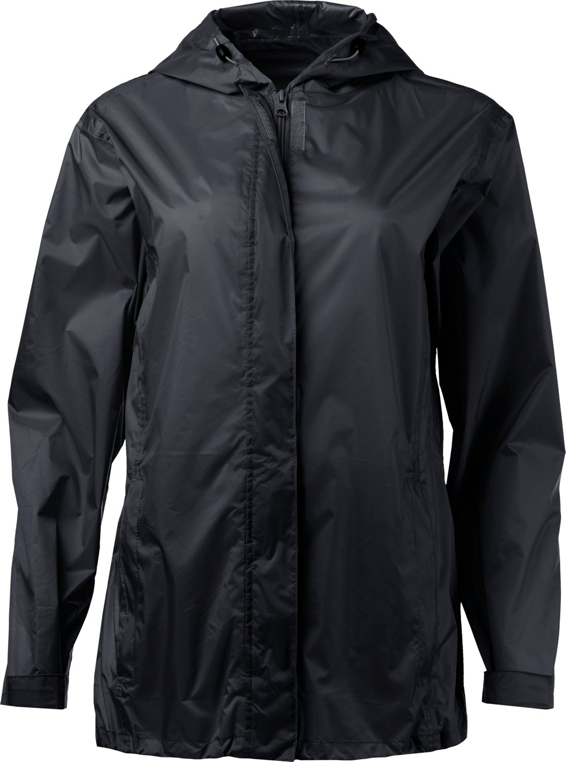 Stay dry in inclement weather with help from the Magellan Outdoors Women's Packable Rain Jacket. The 100% nylon construction offers waterproof, breathable protection, while the drawstring hood provides adjustable coverage.