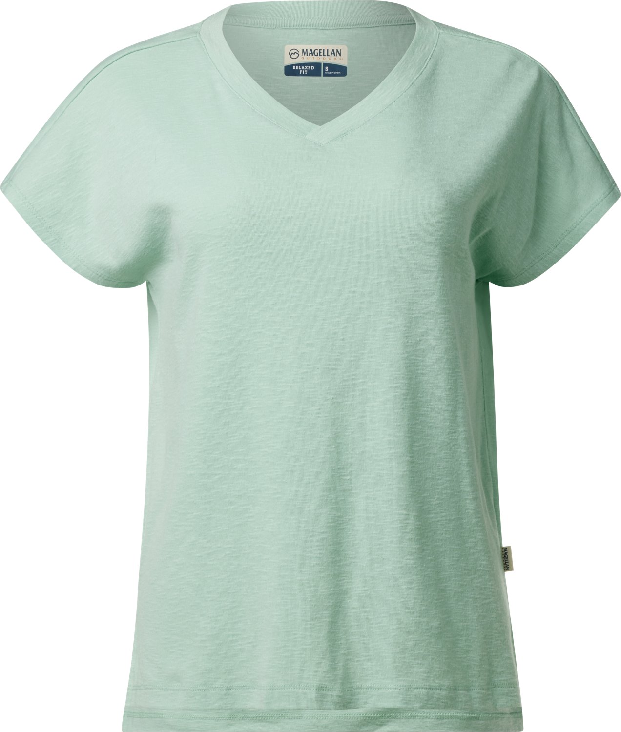 Head out for the day with the Magellan Outdoors Women's Pecos Ridge Solid V-neck T-shirt. The cotton blend provides a comfortable feel, while the solid design adds a stylish touch.