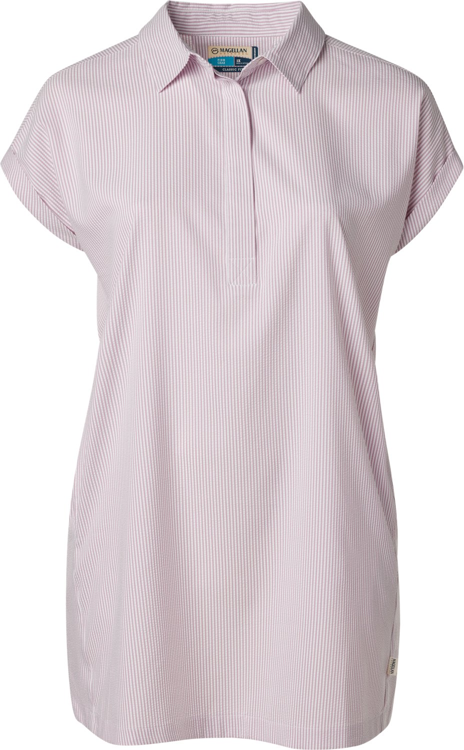 Look your best in the Magellan Outdoors Women's Plus Size Southern Summer Seersucker Short Sleeve Dress. It is made of 100% polyester. The UPF 30+ offers protection against the sun, and its stain resistant and quick dry fabric create a comfortable wear. The allover striped pattern provides an eye-catching detail.