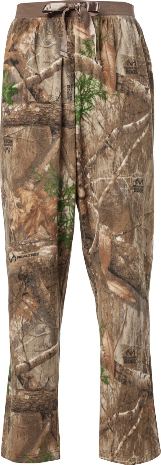 Chill outdoors and enjoy the fresh air in the Magellan Outdoors Women's RealTree Edge Fleece Lounge Pants. The polyester construction delivers softness, and the RealTree Edge camo offers a sleek appearance. The elastic waistband with a drawstring lets you tighten or loosen the fit.