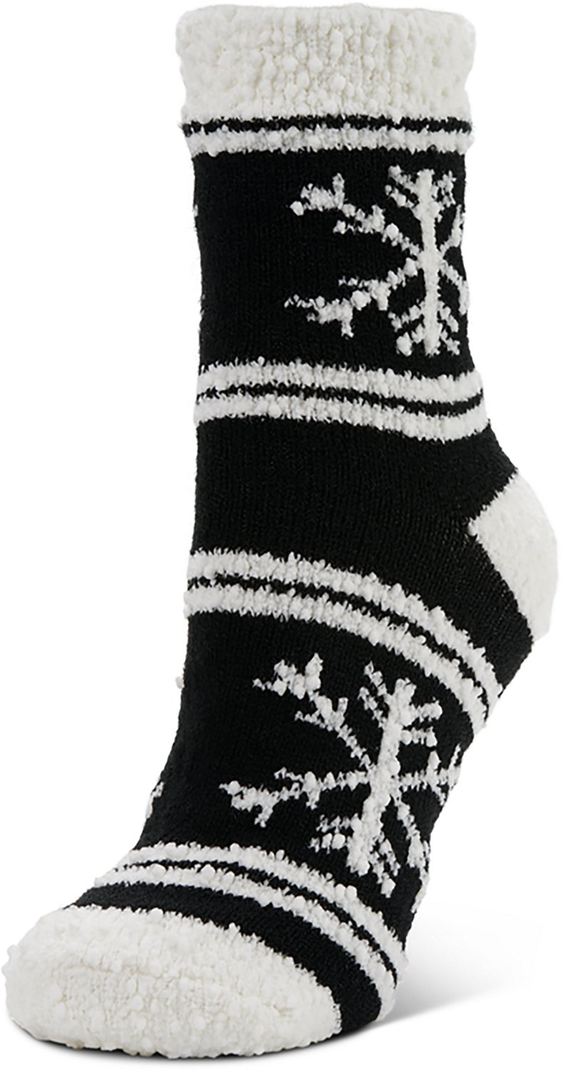 Keep your feet warm while lounging around in the Magellan Outdoors Women's Snowflake Popcorn Lodge Crew Socks. The plush fabric blend provides a soft, cozy feel, while the polyester and spandex lining offers added comfort.