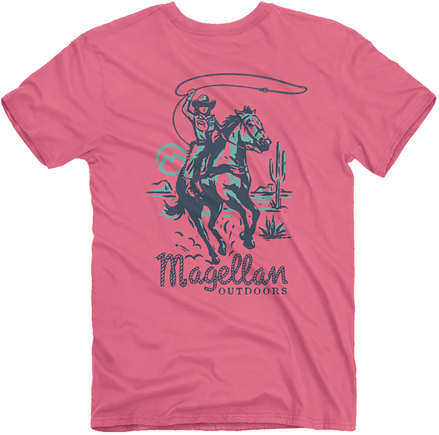 Put your stylish side on display when you wear the Magellan Outdoors Women's Western Cowgirl T-shirt. The 100% cotton construction provides a soft, comfortable feel, while the screen-printed graphic design adds an eye-catching appearance.