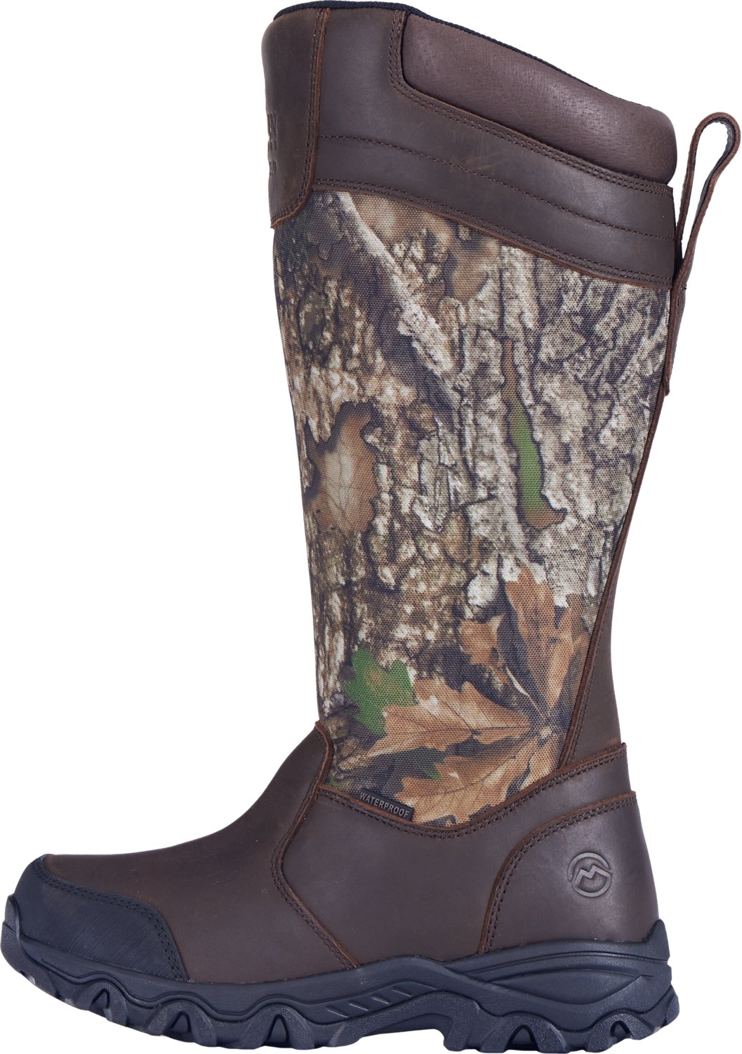 The Magellan Outdoors Kids' Snake Shield Armor 3.0 Boots are crafted with leather and 900-denier camo uppers. These boots feature Snake Shield® technology and rubberized toe caps for added protection, as well as Cosmo Hydroguard waterproof technology. Slip-resistant outsoles. Side zippers.