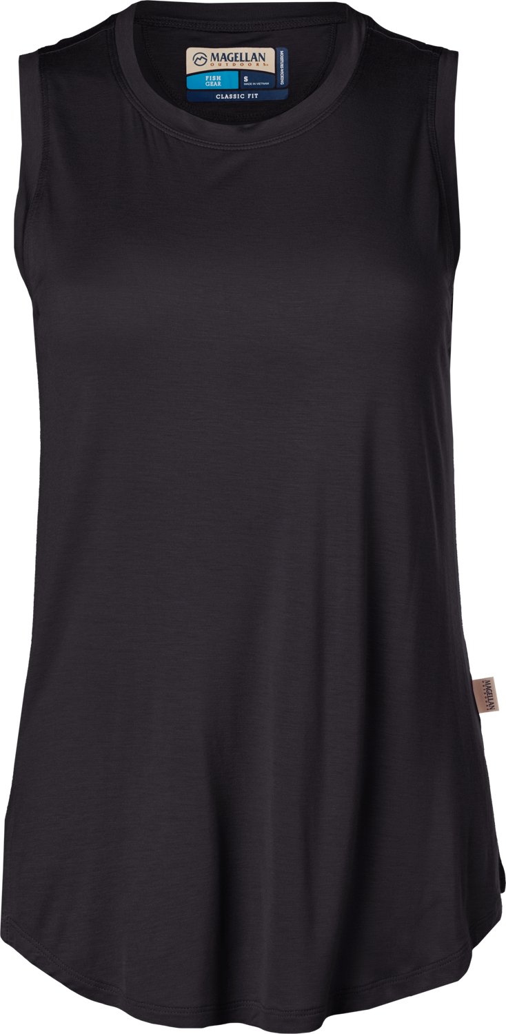 Enjoy the outdoors in the Magellan Women's Summerville Tank. It is made of 65% polyester and 35% rayon jersey. The material wicks away moisture to keep you dry, and its UPF rating of 15 protects you from the sun. The relaxed fit finishes off the design.