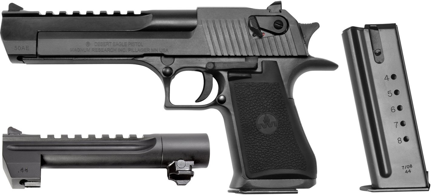 Semiautomatic action with a 7+1-round capacity (.50 AE) or an 8+1-round capacity (.44 Magnum)