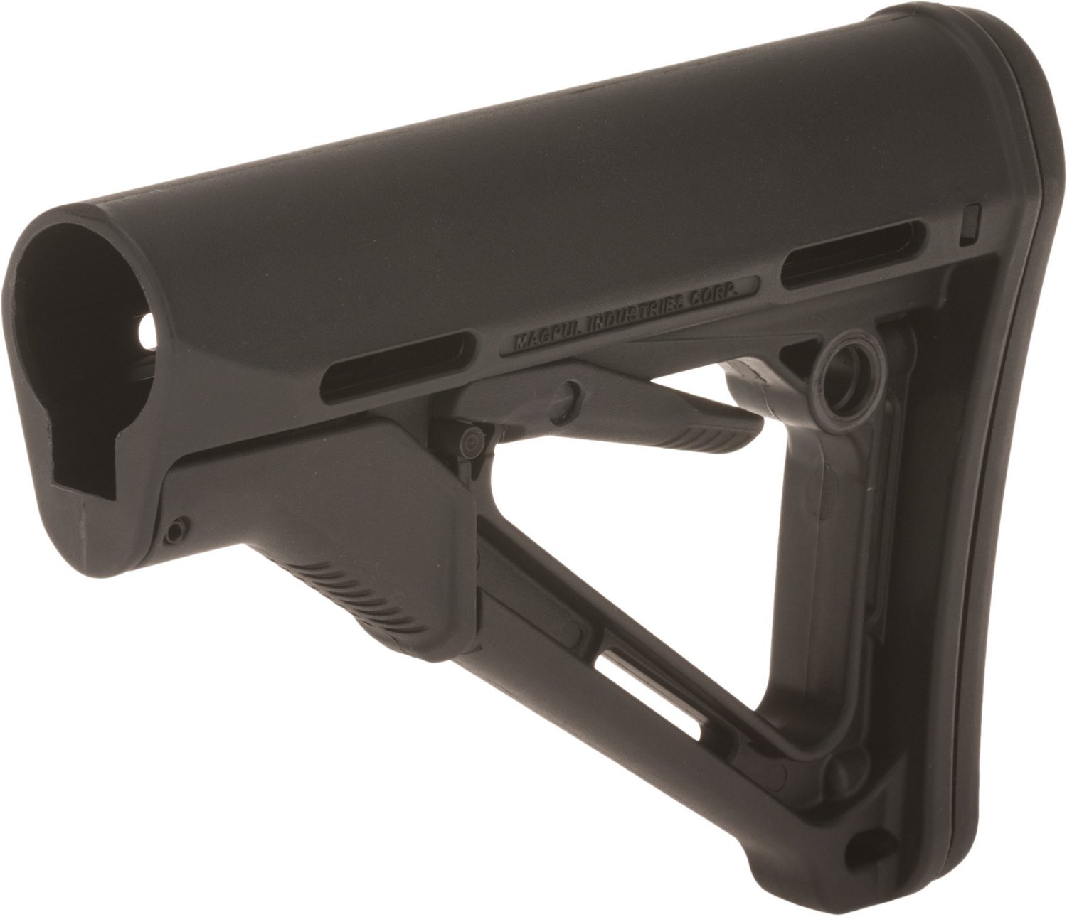 The Magpul CTR Mil Spec Receiver Extension Carbine Stock is a drop-in replacement for the standard M4 stock body and offers enhanced strength, stability and ergonomics. Reinforced polymer construction and A-frame design. Friction locking system.