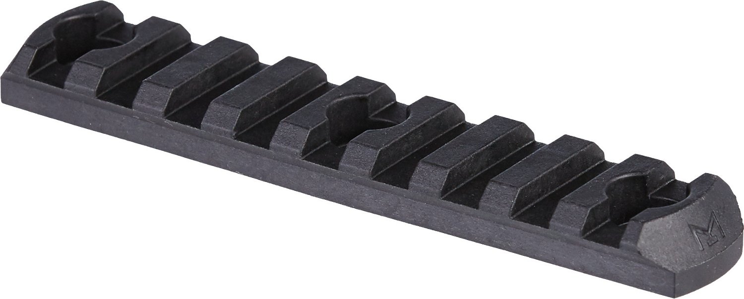 Attach a light, vertical grip and other accessories to your compatible firearm with help from the Magpul M-LOK Polymer 9-Slot Rail, which offers multidirectional mounting positions. Made of reinforced polymer with beveled edges, this rail guards against snagging and offers an intermediate spacing option. Mounting hardware included. Made in USA.
