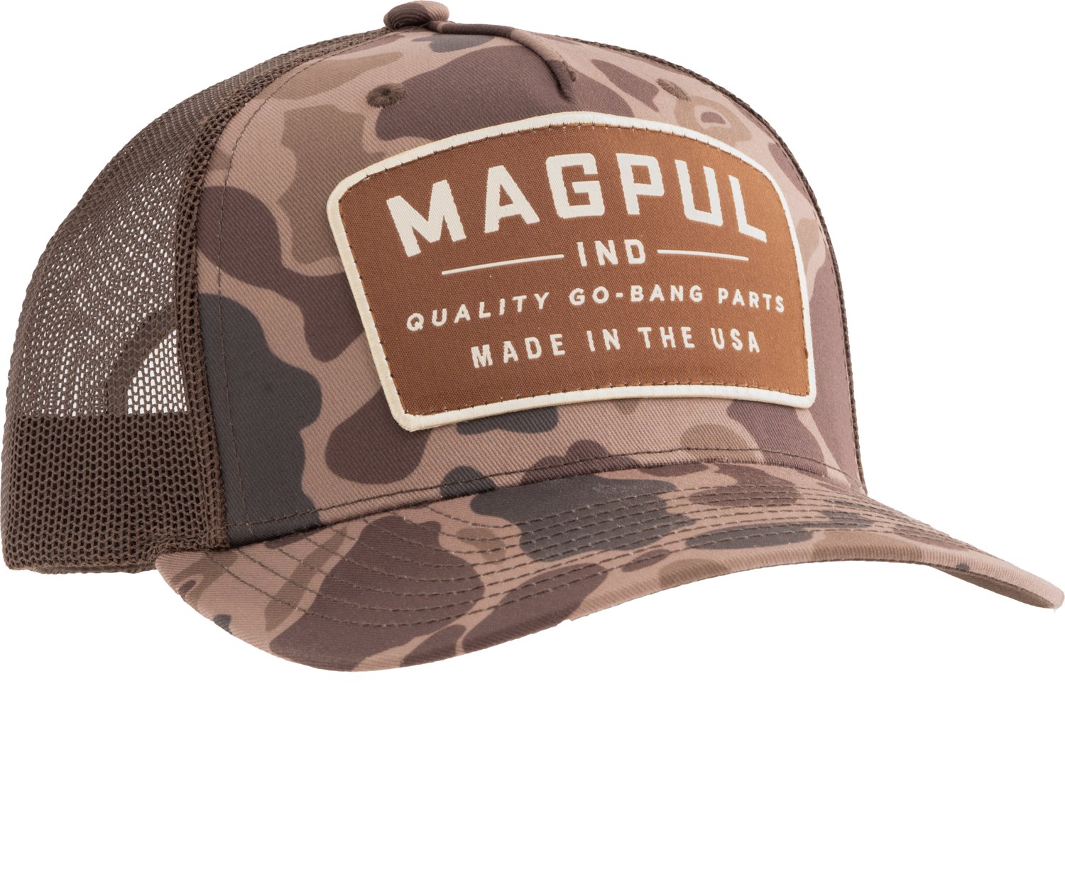 Stand out in style wearing the Magpul Men's Go Bang Trucker Hat. The mesh backing helps you beat the heat and stay feeling cool,, and the cotton and polyester construction withstands wear and tear. The branded patch and interior highlight your brand loyalty and an eye-catching appearance, and the plastic snapback closure lets you tighten or loosen the fit with ease.