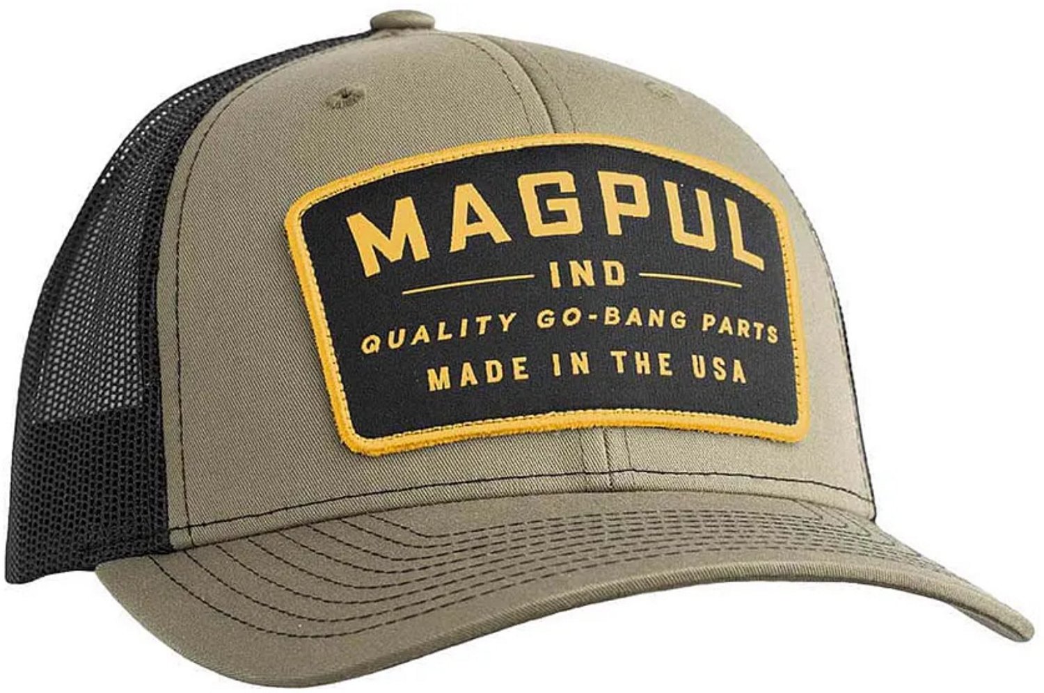 Stand out in style wearing the Magpul Men's Go Bang Trucker Hat. The mesh backing helps you beat the heat and stay feeling cool,, and the cotton and polyester construction withstands wear and tear. The branded patch and interior highlight your brand loyalty and an eye-catching appearance, and the plastic snapback closure lets you tighten or loosen the fit with ease.