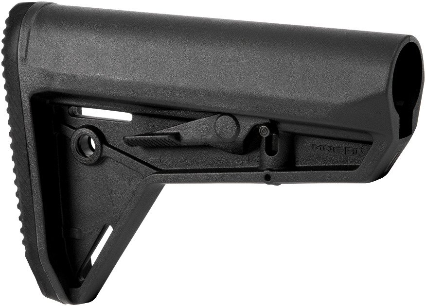 Designed with a nonslip rubber butt pad, the Magpul MOE SL MIL-SPEC Carbine Stock is contoured for comfort with a sloping cheek weld, rolled toe and a shielded, antisnag latch. This stock mounts to most MIL-SPEC carbine receiver extension tubes from brands like Colt, LMT, Ruger®, Smith & Wesson and more. Made in USA.