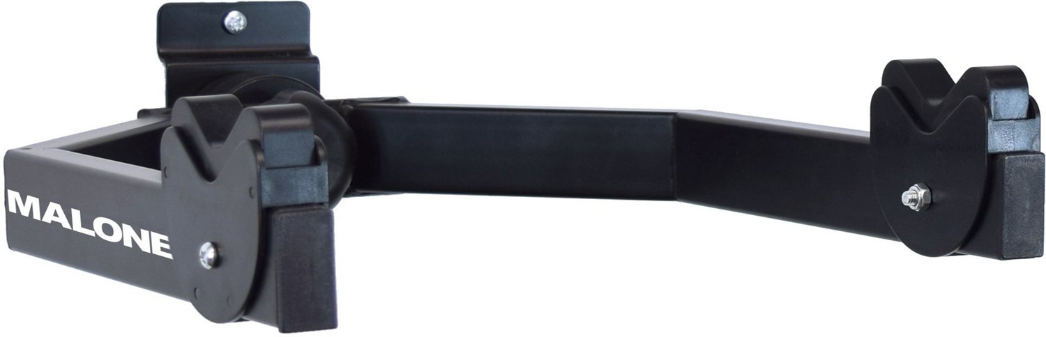 Secure and store your bicycle with the Malone Auto Racks Expo1 Wall Mount Single Bike Storage Rack. This rack stores a single bicycle high on the wall to maximize floor space. The adjustable arm fits most step-over and sloped tube frames, while padded cradles prevent scratches.