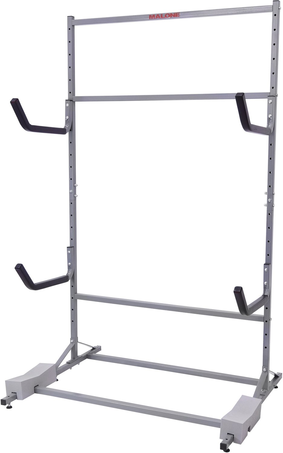 Simplify your storage needs with the Malone Auto Racks FS Rack 3-Kayak Storage Rack. This rack is made from powder-coat, high-load steel and uses corrosion-resistant hardware to withstand the test of time. Capable of holding up to 3 kayaks or 250 pounds, this rack comes with 6 adjustable frame levelers to accommodate different-size watercrafts.