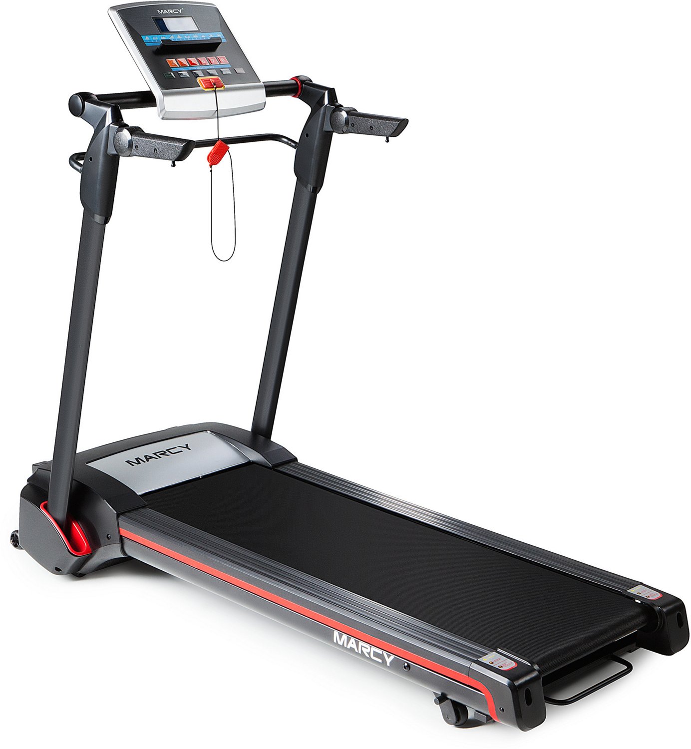 Bring your cardio program to your basement or rec room with the Marcy Easy Folding Motorized Treadmill. Meeting and exceeding your fitness goals has never been so easy thanks to this treadmill's 1- to 2-horsepower (peak) motor, which allows speeds from 0.5 to 8 miles per hour to help you walk, jog or run your way to a healthier self.