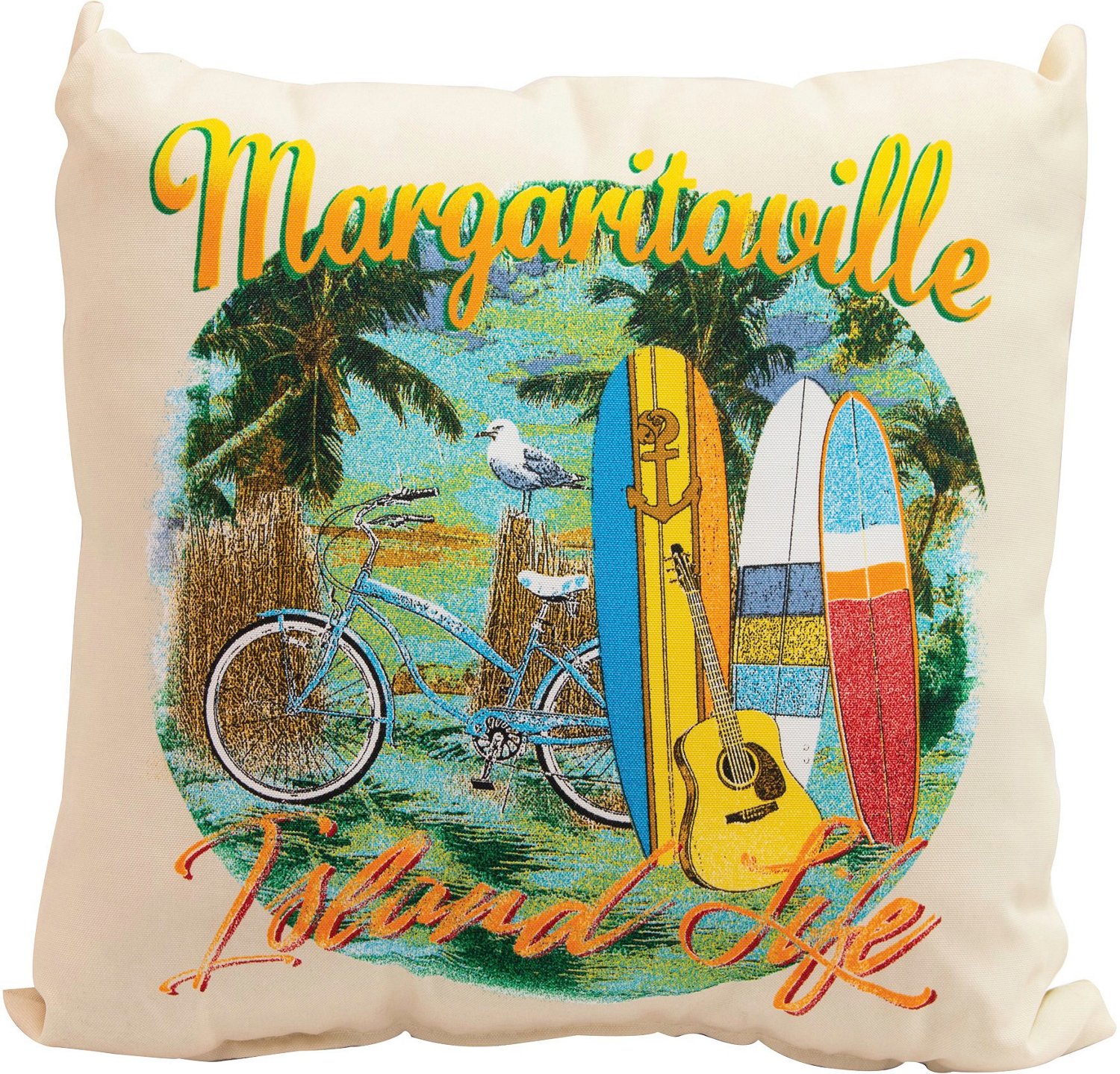 Bring the beach to your patio or living room with Margaritaville 17 in Island Life Double Sided Throw Pillows 2-Pack. These fun pillows are made with comfortable polyester and are suitable for indoor or outdoor use. They are 17 inches square and have 2 different Margaritaville "Island Life" motifs for a beachy feel.