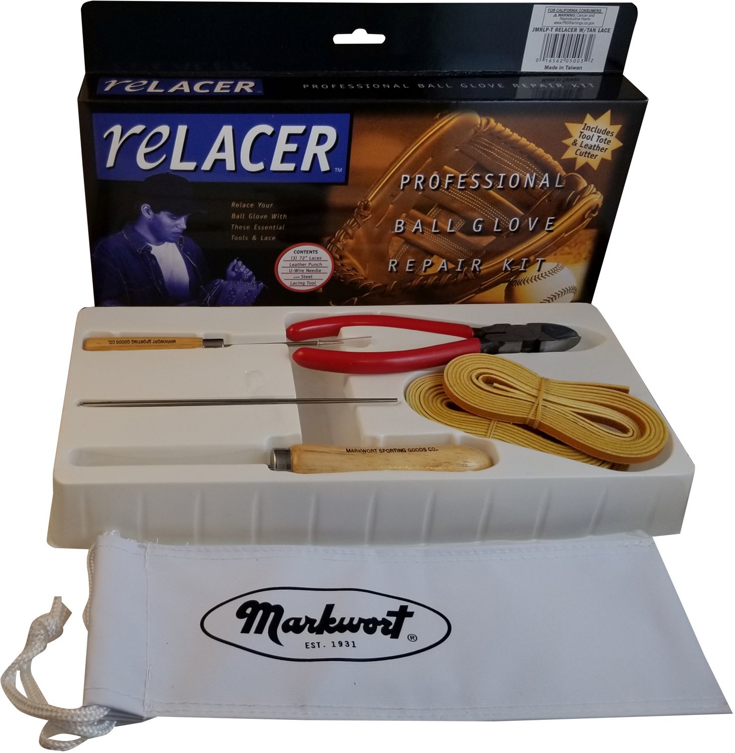 Keep your gloves in top shape with the Markwort Deluxe Professional Re-Lacer Kit. This kit includes a steel and U-wire lacing tool, leather cutter and pouch, tool tote and 3 laces designed to re-lace your ball gloves with ease.