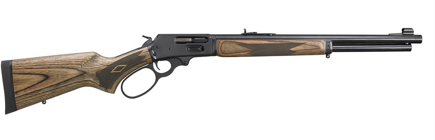 Maintain quality with the Marlin Model 1895 Guide .45-70 Govt Lever Action Rifle. The cold hammer-forged threaded steel barrel delivers precision rifling, while the laminate buttstock and forend offer stability and durability. The adjustable semi-buckhorn sight allows for quick target acquisition, and the rubber buttpad absorbs recoil for comfortable shooting.