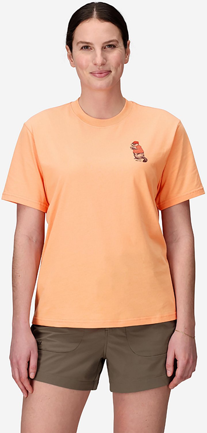 Add a soft, everyday shirt to your wardrobe with the Marmot Women's Sunny Marty Short Sleeve T-shirt. This cotton and polyester blend provides a comfortable fit for all day wear, while the Marty the Marmot logo adds a touch of playful style.