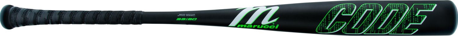 Hit the ball confidently with the Marucci Adults' CODE BBCOR Baseball Bat -3. This durable baseball bat has thin walls and a large sweet spot that offers forgiveness and a mid-balanced feel. The ring-free barrel and 1-piece alloy construction increase performance. Soft-touch grip. AV2 knob. 2-5/8-inch barrel diameter.