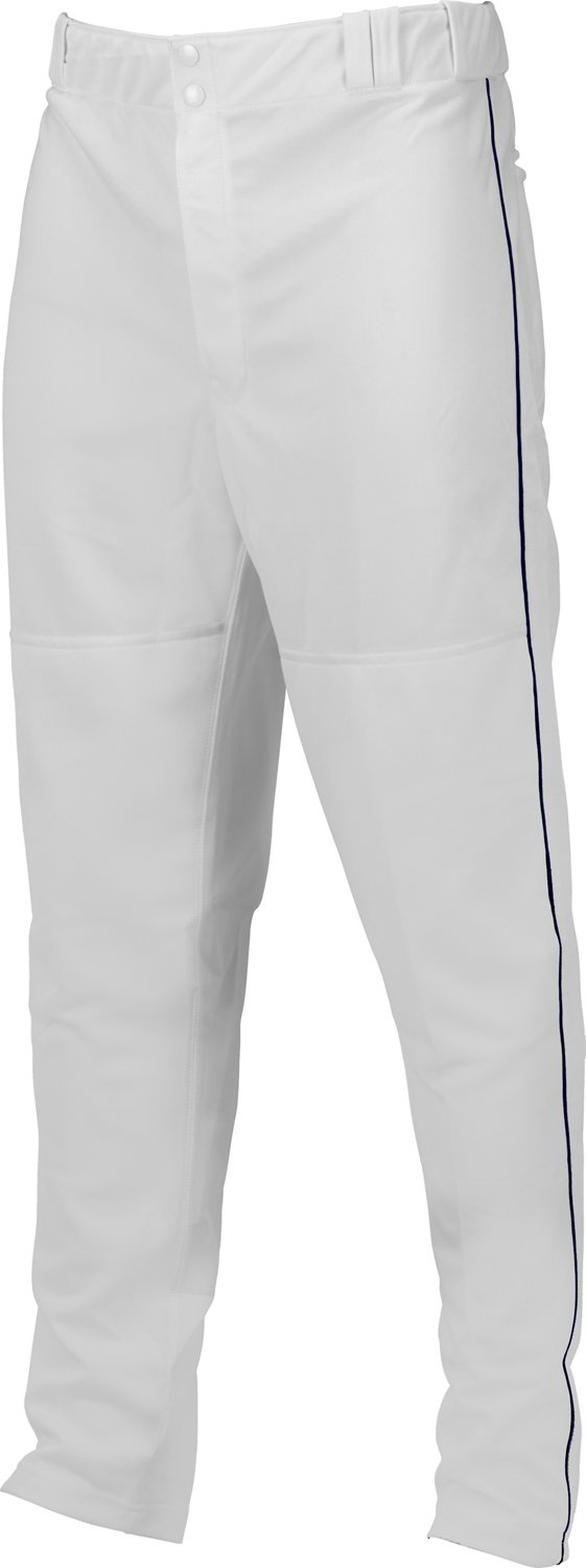 Slide confidently and comfortably onto the base in the Marucci Adults' Double Knit Piped Baseball Pant. Designed with 290GM2 weight material for durability, this pant is made of 100% polyester double-knit fabric with double knee construction for lasting wear. The silicone strips on the waistband hold your jersey in place, while the 2 button-through back pockets and open bottom hem offer a classic look.