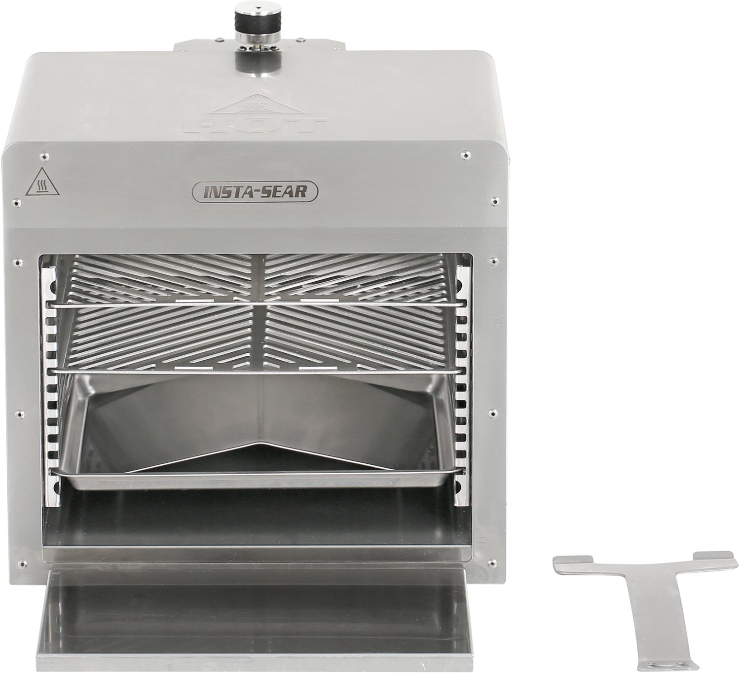 Infrared burner produces 1,500 degrees Fahrenheit of intense heat for quick cooking