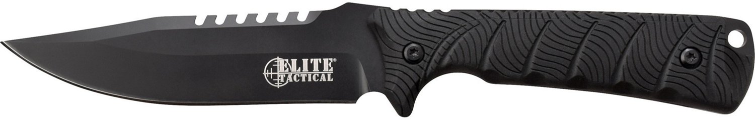 Equip yourself for a range of situations with the Master Cutlery Elite Tactical Backdraft Fixed Blade Knife. The steel clip point blade is ideal for multi-purpose applications and features a saw-toothed back edge for extra versatility. A rubber molded grip allows comfortable, slip-resistant handling.