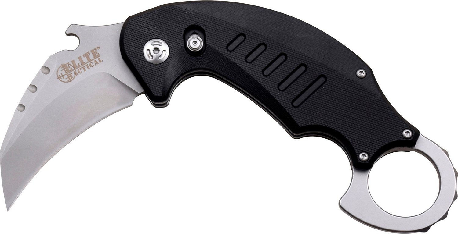 Equip yourself for a range of situations with the Master Cutlery Elite Tactical Ravid Manual Folding Knife. The steel hawkbill blade is ideal for long cuts and carving. The folding design and locking mechanism ensure safe carry, while the ball bearing pivot allows ambidextrous use.