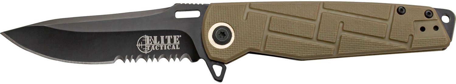 Keep the Master Cutlery Elite Tactical Readiness 3.5 in Spring Assisted Knife nearby in just you need it. The pocket knife folds and opens thanks to a spring-assisted design and is made with a strong, stainless-steel, drop-point blade. 0.29 pounds. 3.5-inch blade length. 8-inch overall length.