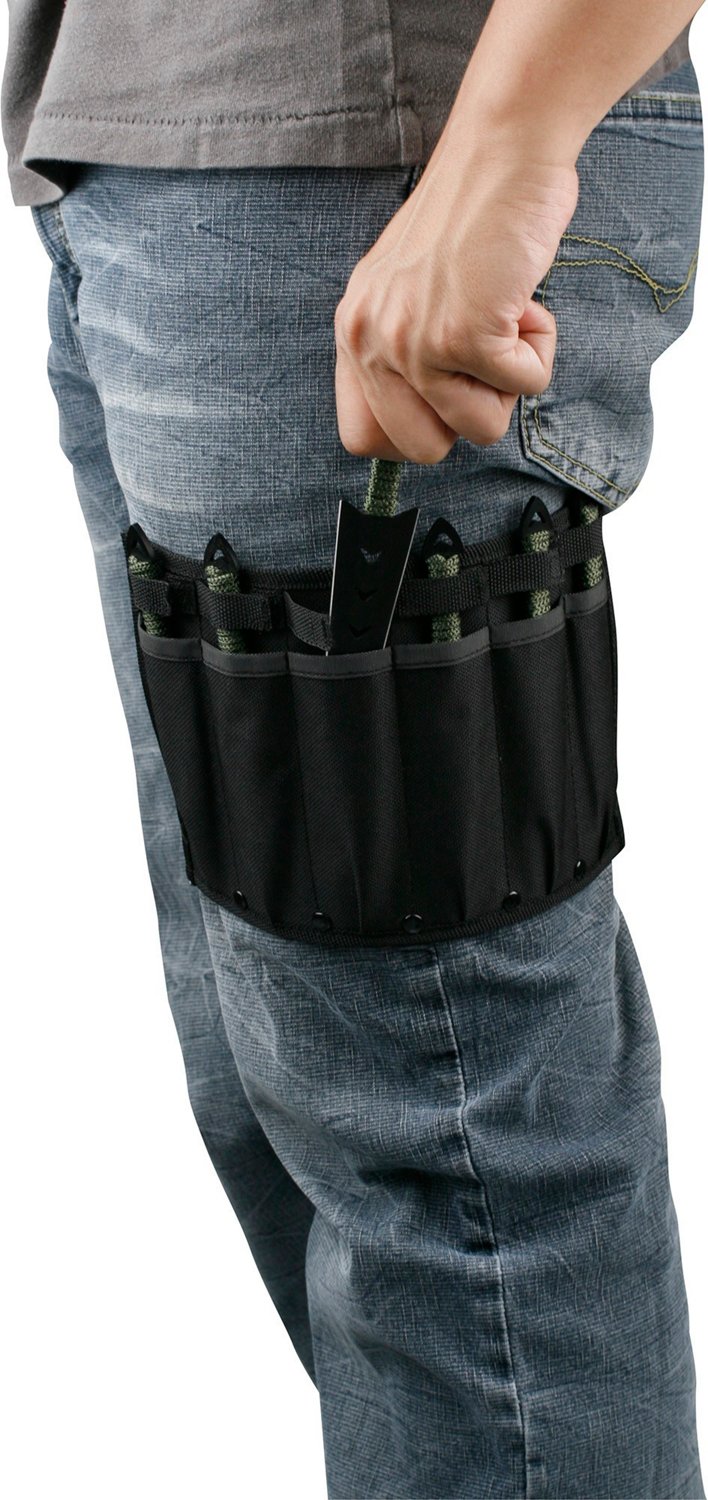 Practice your accuracy with the Master Cutlery Perfect Point 6-Piece Throwing Knife Set. This set includes six 6.5-inch knives with stainless steel blades and cord wrapped handles.