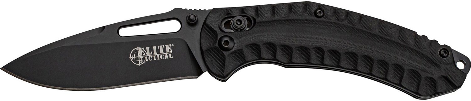 The Master Cutlery Pyrodex Elite Tactical Folding Knife features a folding drop-point blade knife. The knife blade features a durable black D2 material. The handle is made from G10 with a rapid lock mechanism. The ball bearing pivot delivers seamless opening.