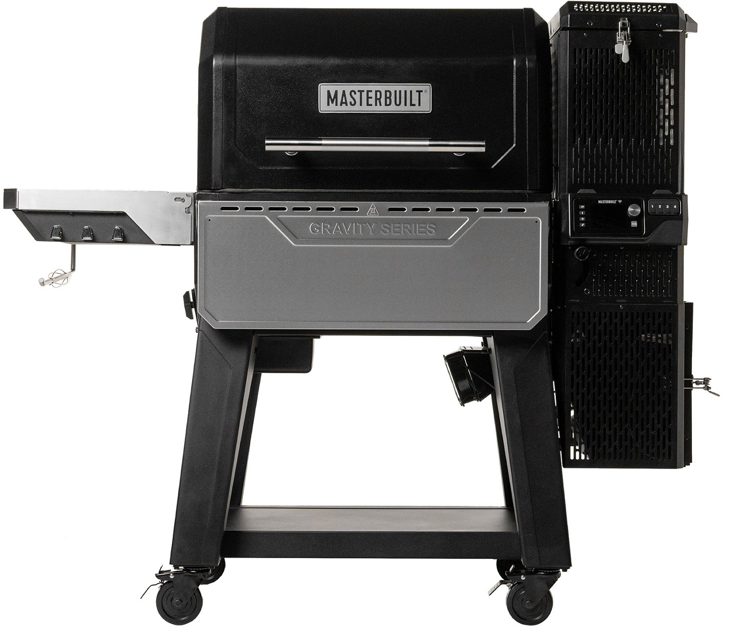 Grill or smoke burgers, poultry and more with the Masterbuilt Gravity Series XT Digital Charcoal Grill and Smoker. The stainless-steel cooking grates help seal in flavor, while the adjustable warming and smoking racks keep food warm. The fuel-saver body design improves heat retention, and the folding stainless-steel front and side shelves provide additional food preparation space.
