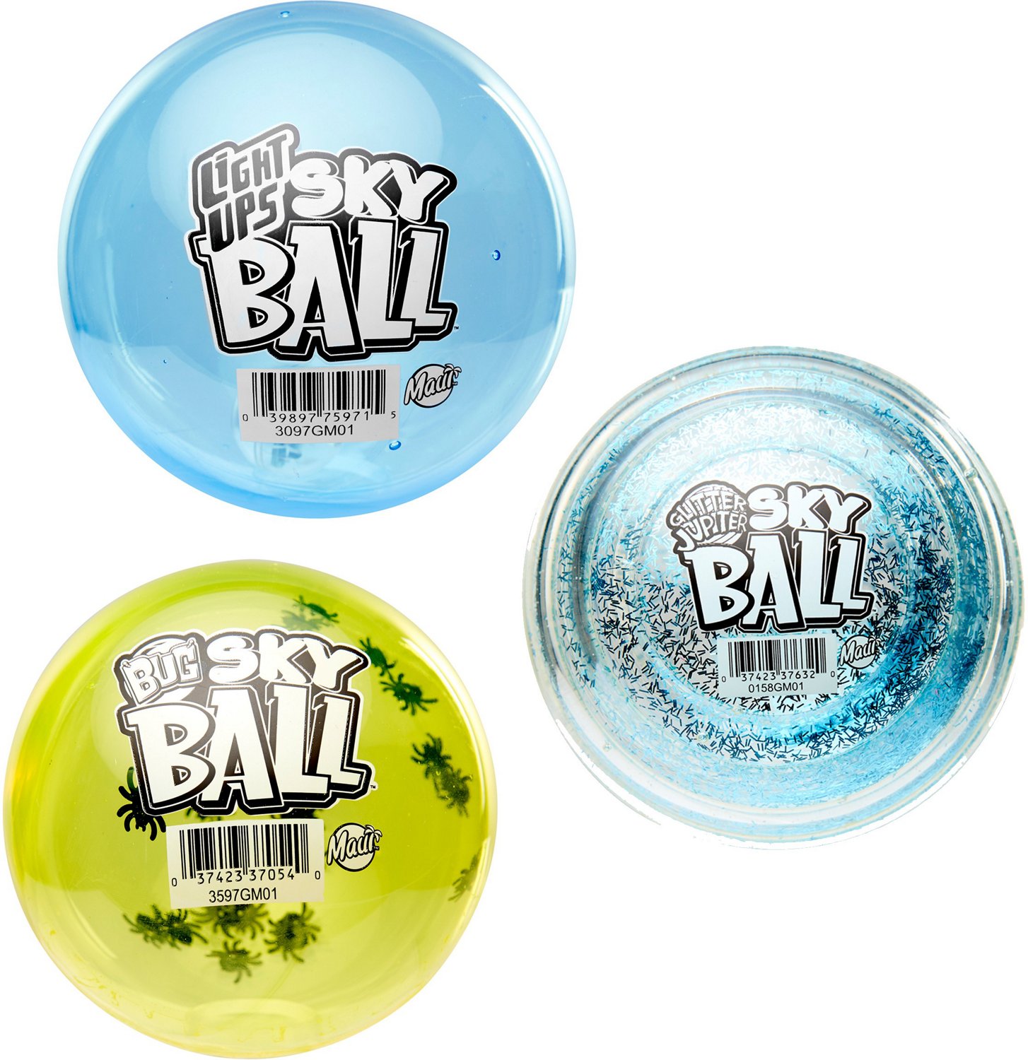Bounce, smack and kick the Maui Toys Sky Ball Assortment up to 75 feet high. This assortment consists of 6 nature balls with fun creepy-crawler patterns, 6 glitter balls filled with glitter and 6 light-up balls designed with LED lights inside that shine bright when you bounce them.