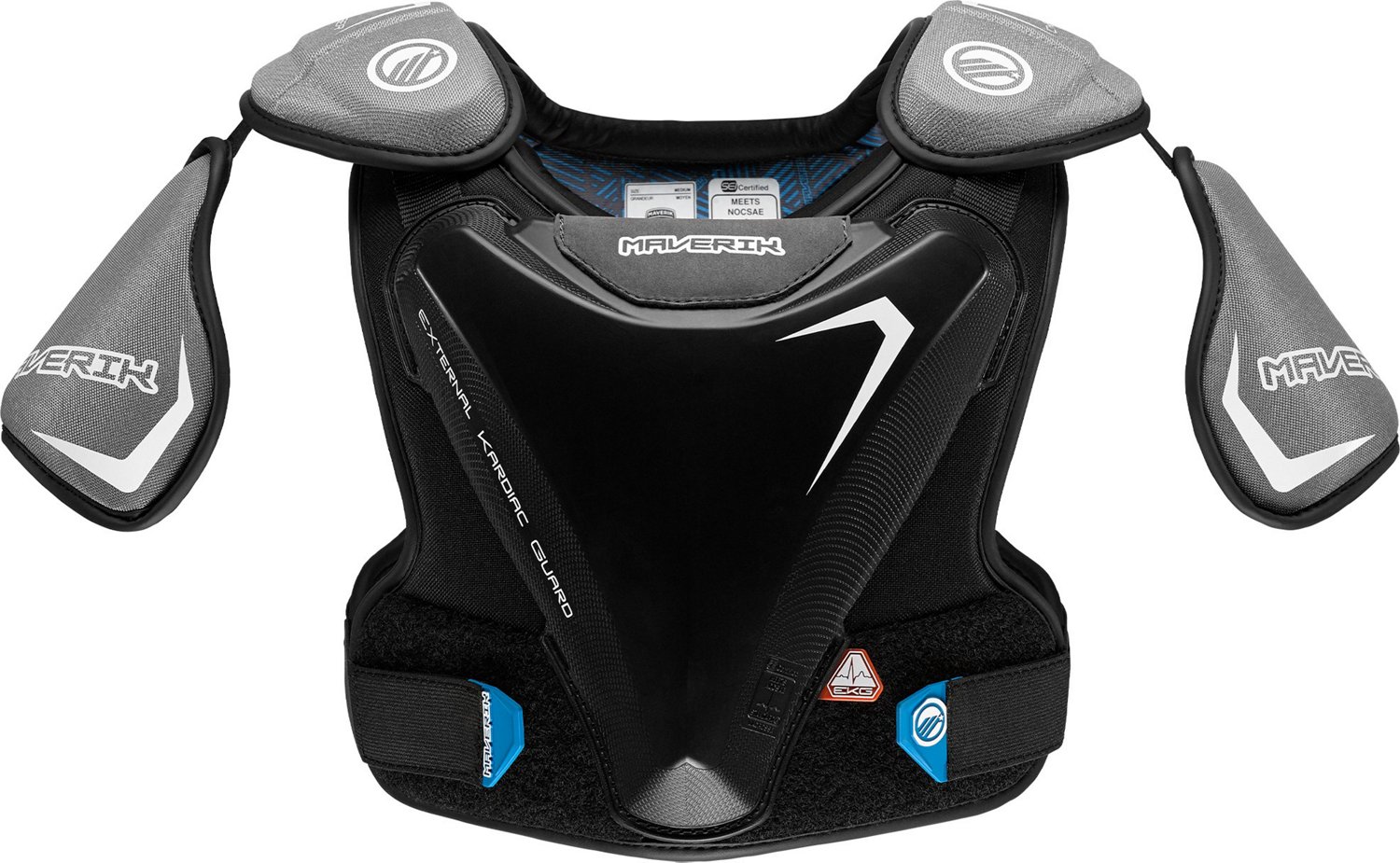 Take your game to the next level when you use the Maverik Adults' Charger EKG 2022 Lacrosse Shoulder Pad. The durable construction encourages mobility and comfort. The External Kardiac Guard provides reliable protection and meets NOCSAE performance standards, while the balancing protection helps keep players safe on the move.