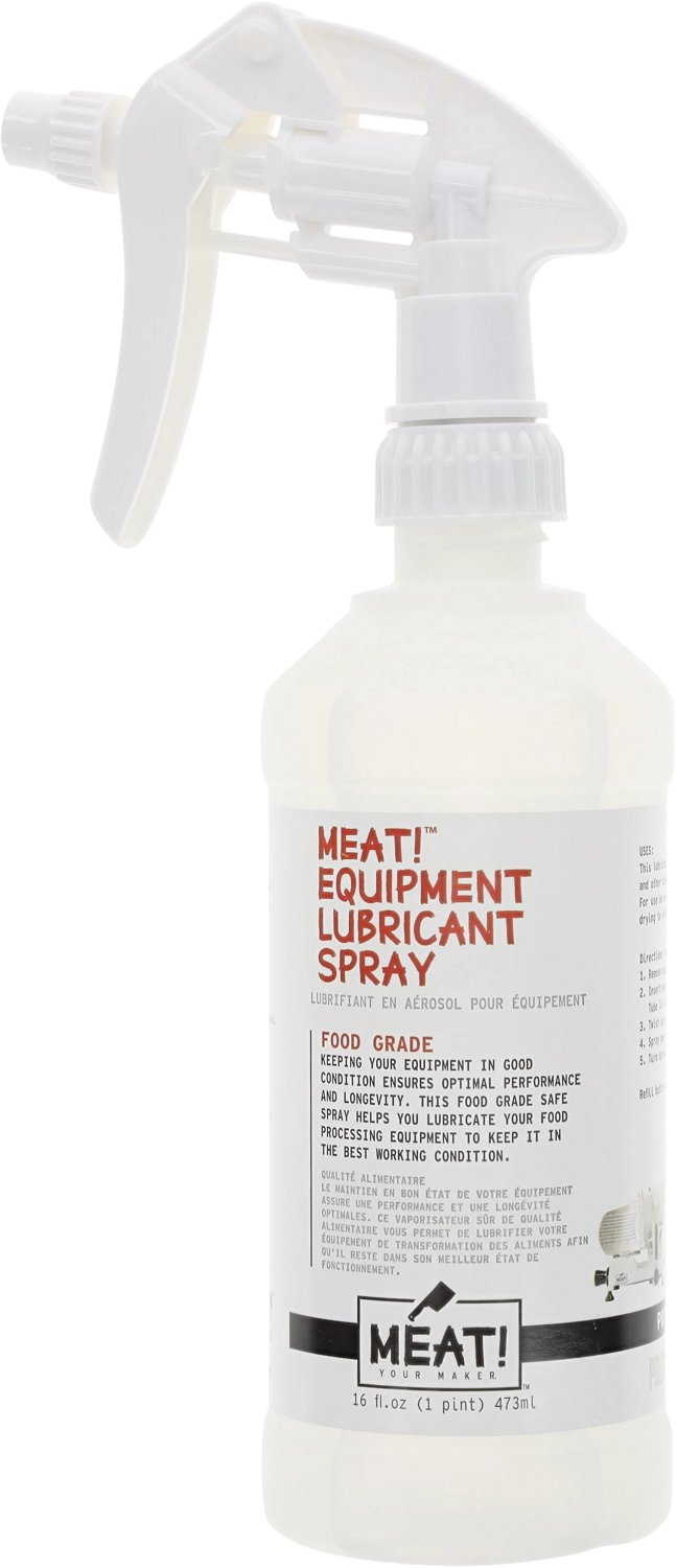 Make sure your food processing equipment is good to go by spraying it down with the MEAT! 16 oz Equipment Lubricant Spray. This spray canister contains 16 fluid ounces of 3H oil that is food-safe and helps keep your equipment up and running for years to come.