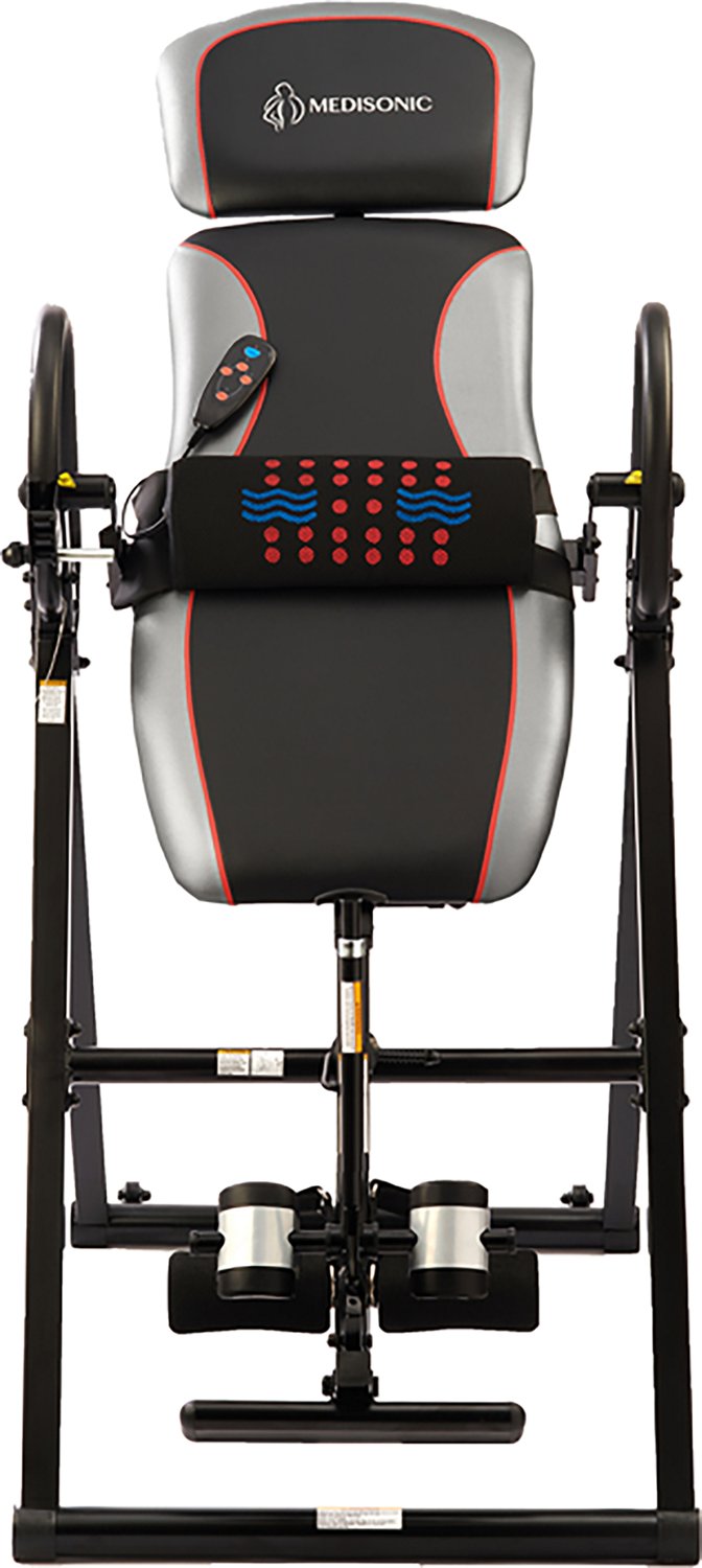 Perform targeted workouts with the Medisonic Gray Inversion Table. The heavy duty frame construction affords durability, while the adjustable inversion angles help meet your needs. The large backrest and adjustable headrest provide support, and the lumbar heat and vibrating massage pad aids in recovery.