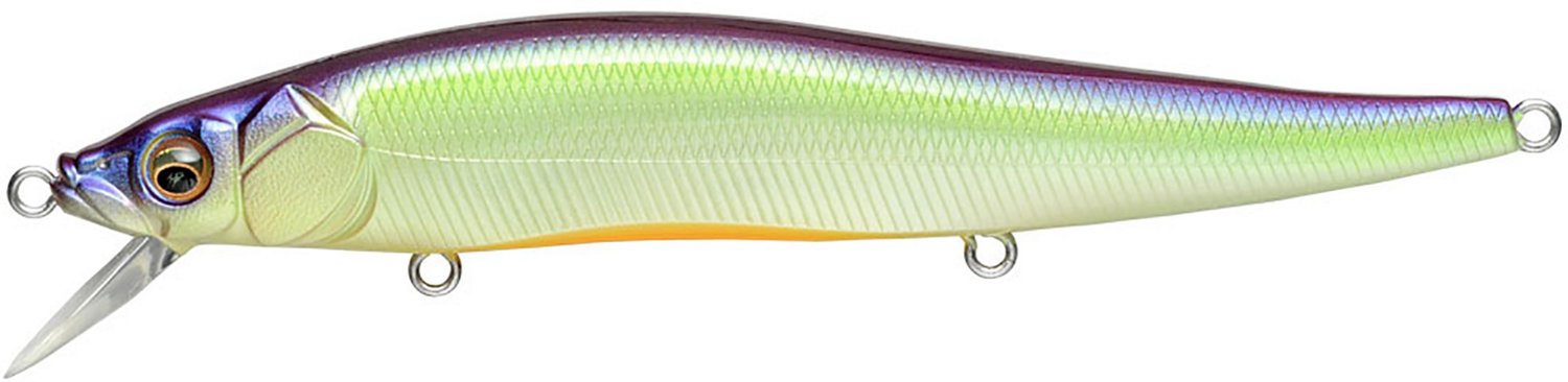 Call in the bass with the Megabass VISION ONETEN Jerkbait. Designed for fishing bass and for use in freshwater applications, these baits feature a quick darting action with realistic color patterns. The Tungsten Multi-Way Moving Balancer System supplies a powerful action when bombing casts. The included 3 Megabass original Katsuage Out-Barb treble hooks increase hookup percentages with durable light-wire penetration.