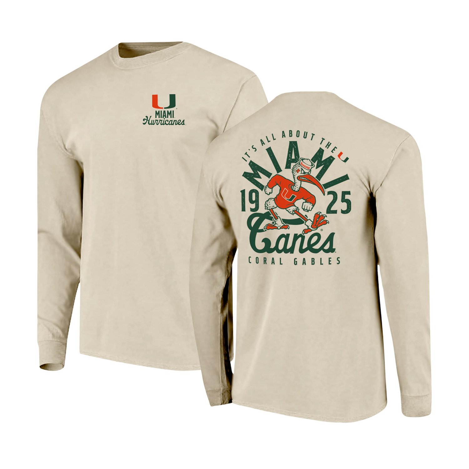 Show off your timeless Miami Hurricanes pride with this Comfort Colors Mascot Overlay Long Sleeve T-Shirt Featuring team graphics on the left chest and back this tee is a must-have for repping theMiami HurricanesThe 100 cotton fabric will keep you comfortable all day long whether you're cheering from the stands or relaxing at home