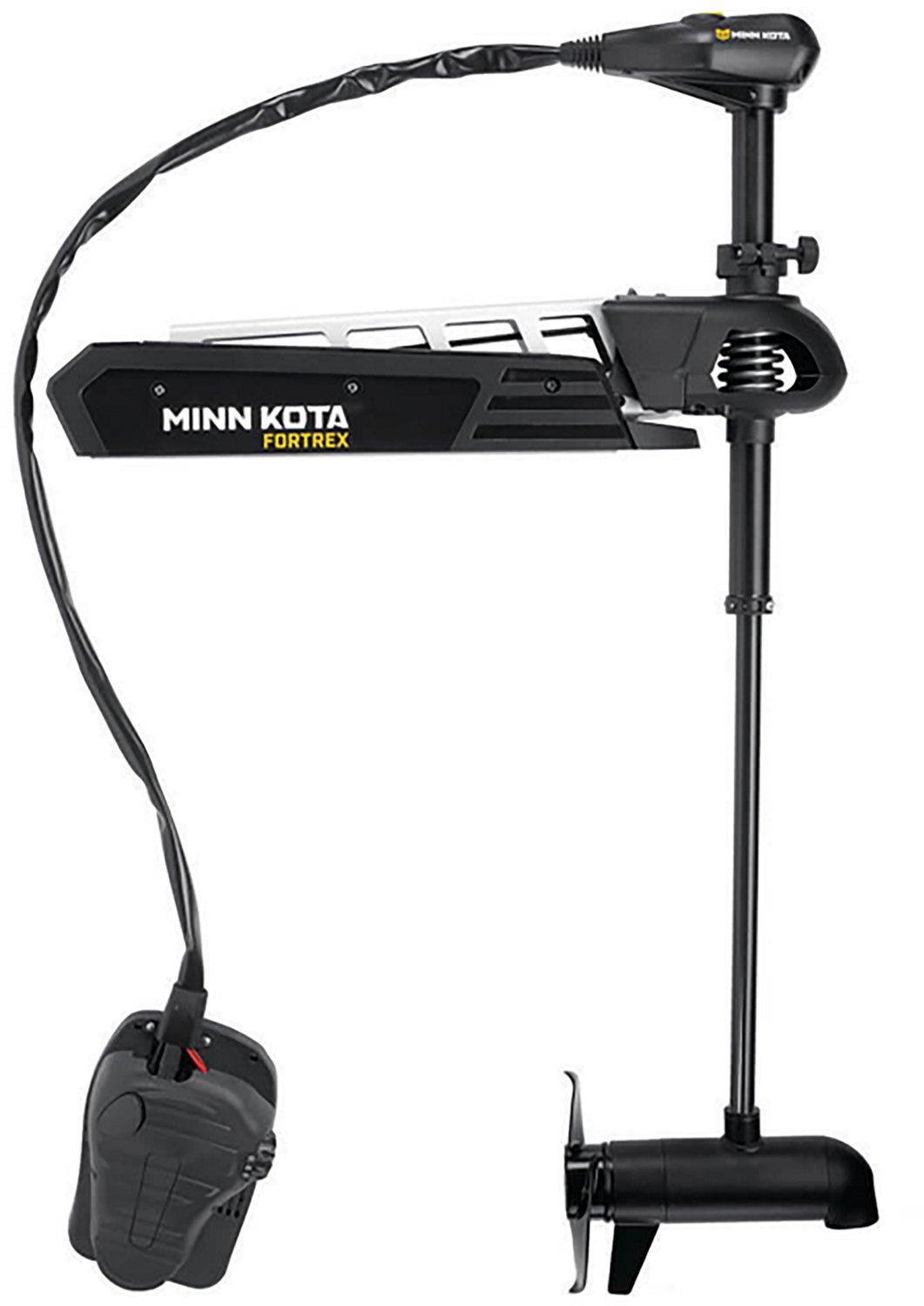 Hit the water with the Minn Kota Fortrex FW Foot Steer Electric Freshwater Bow Mount Trolling Motor. It features a patented Lift-Assist Design to cut the weight of the stow and deploy in half, and the motor features a removable Bowguard 360 Bracket that breaks away on impact from any angle and automatically resets itself.