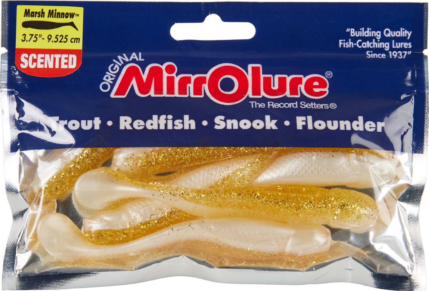 Great for use when fishing in dark or stained waters to attract gamefish, the MirrOlure® Marsh Minnow 3-3/4" Paddle Tail Baits 6-Pack feature a realistic baitfish profile with a large tail design to create vibration when retrieved. Heavily scented.