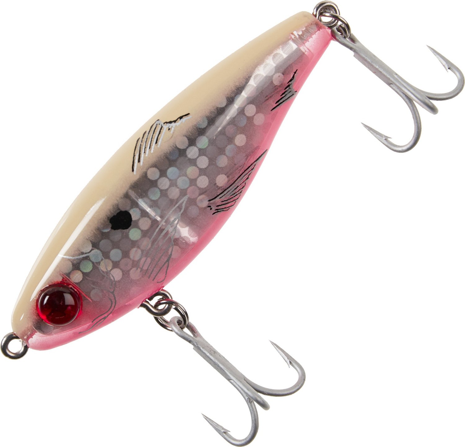 Arm your tackle box with the MirrOlure® MirrOdine® XL 3" Suspending Twitchbait that features a realistic baitfish pattern and a wide body to produce violent strikes. The 2 hooks are strong to help you secure heavy fish, and the bright luminescent insert, fish-calling rattles and 3-D eyes add a realistic appearance. This bait is ideal for attracting redfish, trout, snook, striped bass and tarpon and casts far while maintaining good sink rate.
