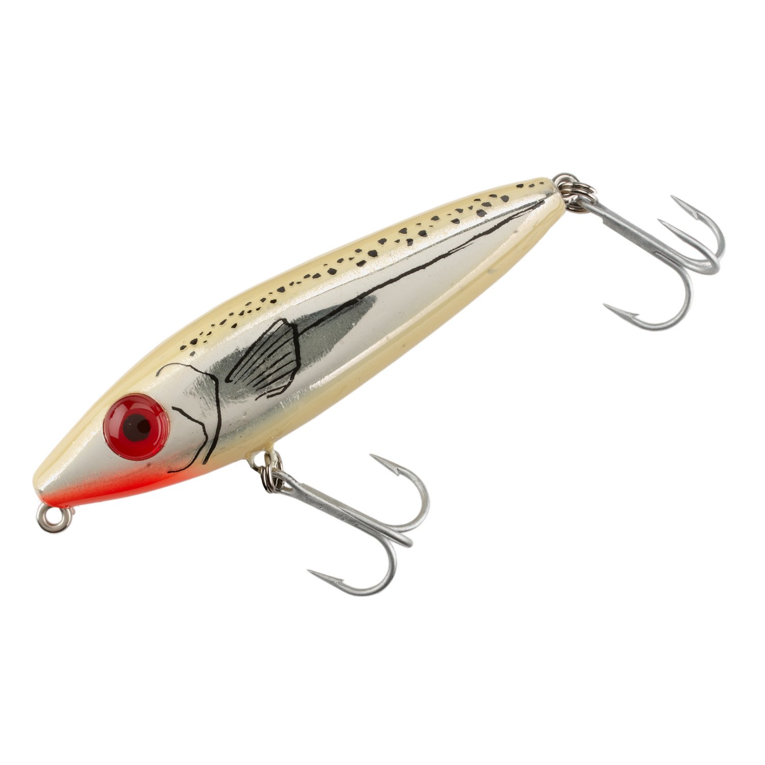Catch plenty of fish with the MirrOlure® She Pup Bait. This bait features twin sonic fish-calling rattles that emit a high-frequency sound to trigger angry strikes. The "walk-the-dog" technique is easy to perform for fishermen of any experience level, and the bait can be used in both saltwater and freshwater fishing applications.