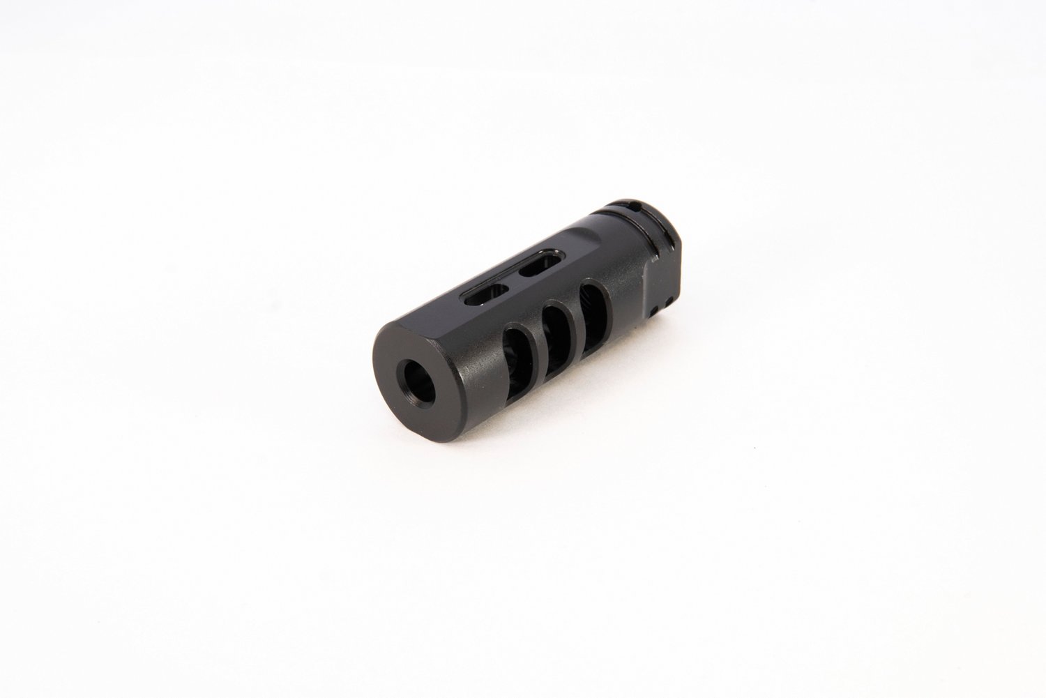 Mitigate muzzle climb with a Mission First Tactical AR15 Muzzle Device. The 2 top ports direct gases upward, combating recoil for comfortable shooting. Additional side ports assist gas disbursement to keep sound compression low.