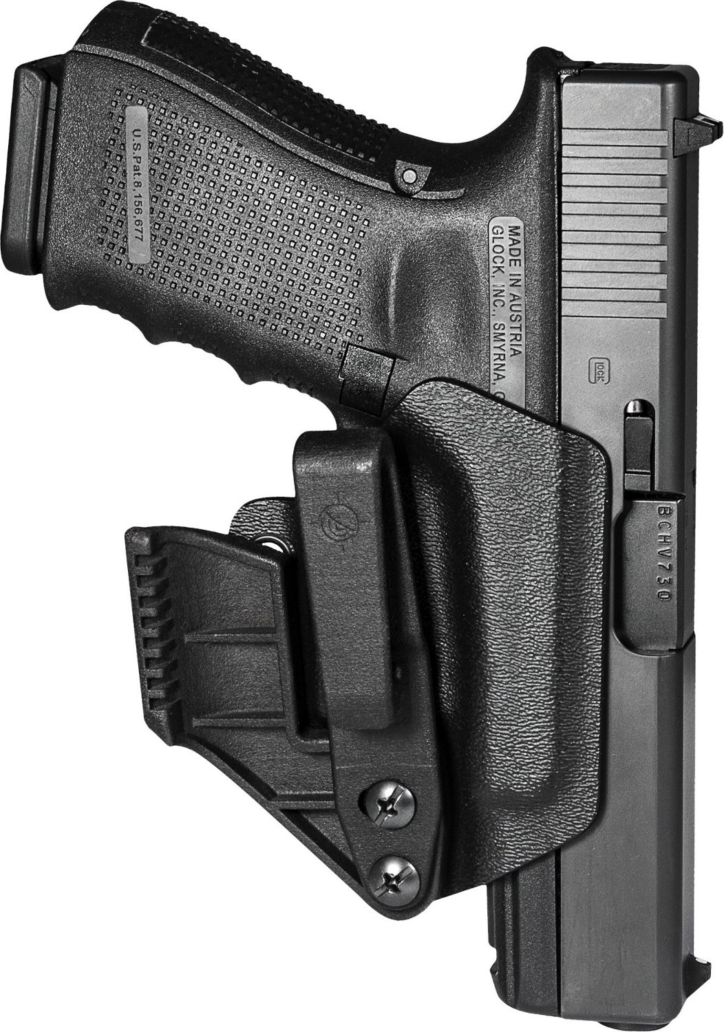 The Mission First Tactical Minimalist GLOCK IWB Holster will securely hold your weapon. This holster is ideal for concealed carry and can be worn by left- or right-handed shooters. The .08 Boltaron construction offers durability, and cant can be adjusted from 0 to 20 degrees. Made in USA.
