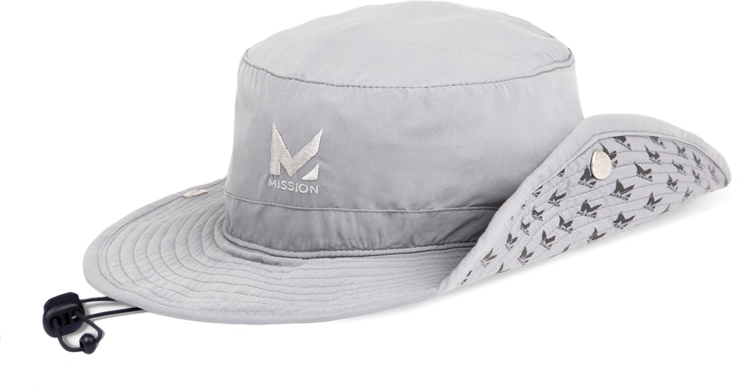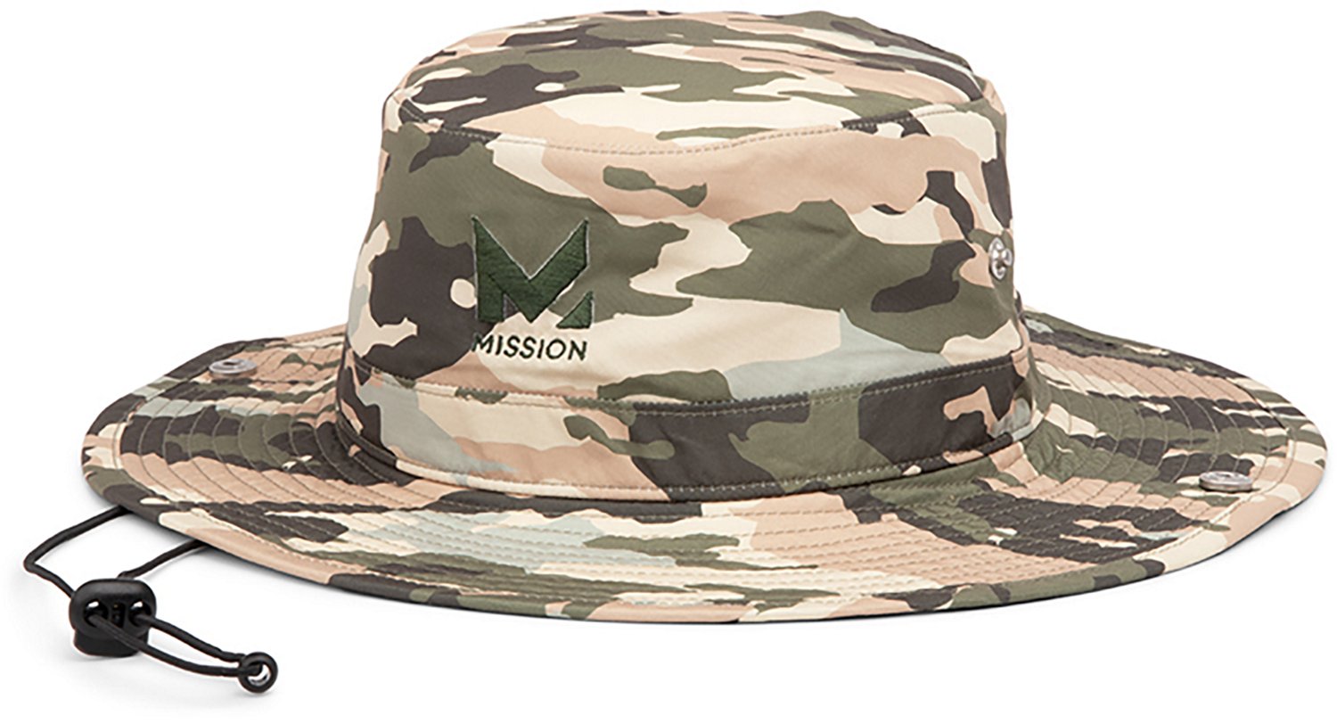 Stay cool and dry in the MISSION Men's Cooling Bucket Hat, which is made of 100% polyester ultrawicking Eventrue fabric that pulls sweat from the body for quick drying and features proprietary inner fabric that cools instantly when soaked with water, wrung out and snapped in the air. UPF 50 sun protection.