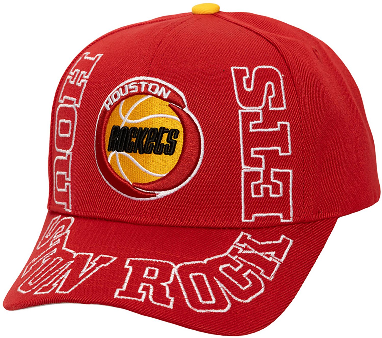Root for your favorite team when you wear the Mitchell & Ness Adults' Houston Rockets Around the Way Hardwood Classics Pro Snapback Cap. Its structured crown maintains its shape. The curved brim blocks the sun's harsh rays, and its snap closure at the back provides an adjustable fit. The Houston Rockets graphics on the front.